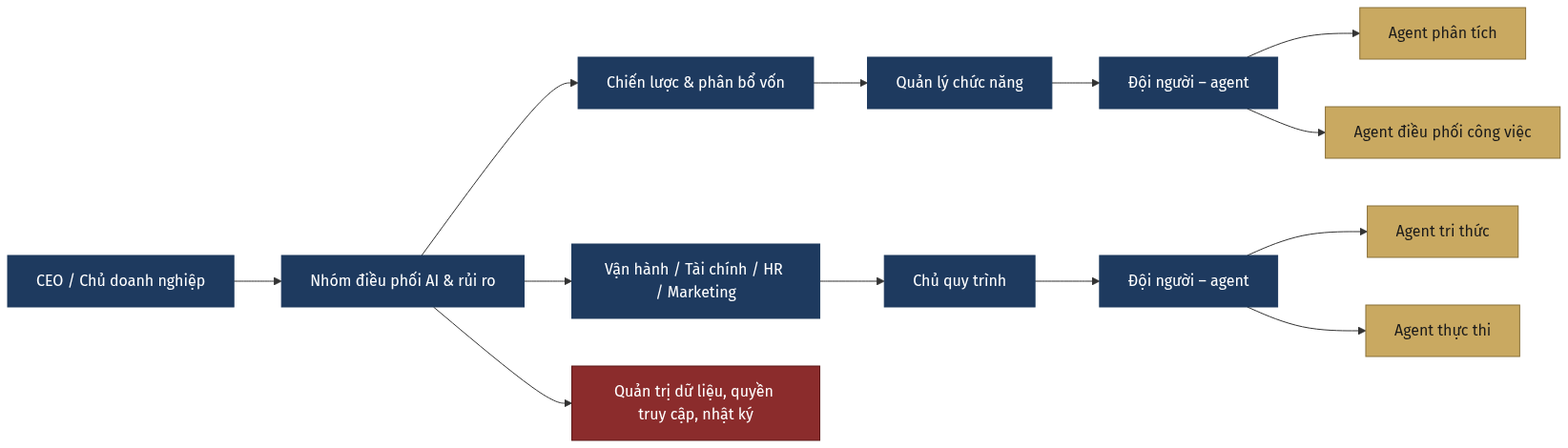 Văn hóa tổ chức. Agent có thể tăng tốc thông tin và tự động hóa quyết định cấp thấp, nhưng không tự tạo ra niềm tin hay tinh thần trách nhiệm. Trái lại, nếu doanh nghiệp không có văn hóa phản biện, minh bạch dữ liệu và kỷ luật escalation, agent sẽ khuếch đại cả sai sót lẫn thói quen xấu.