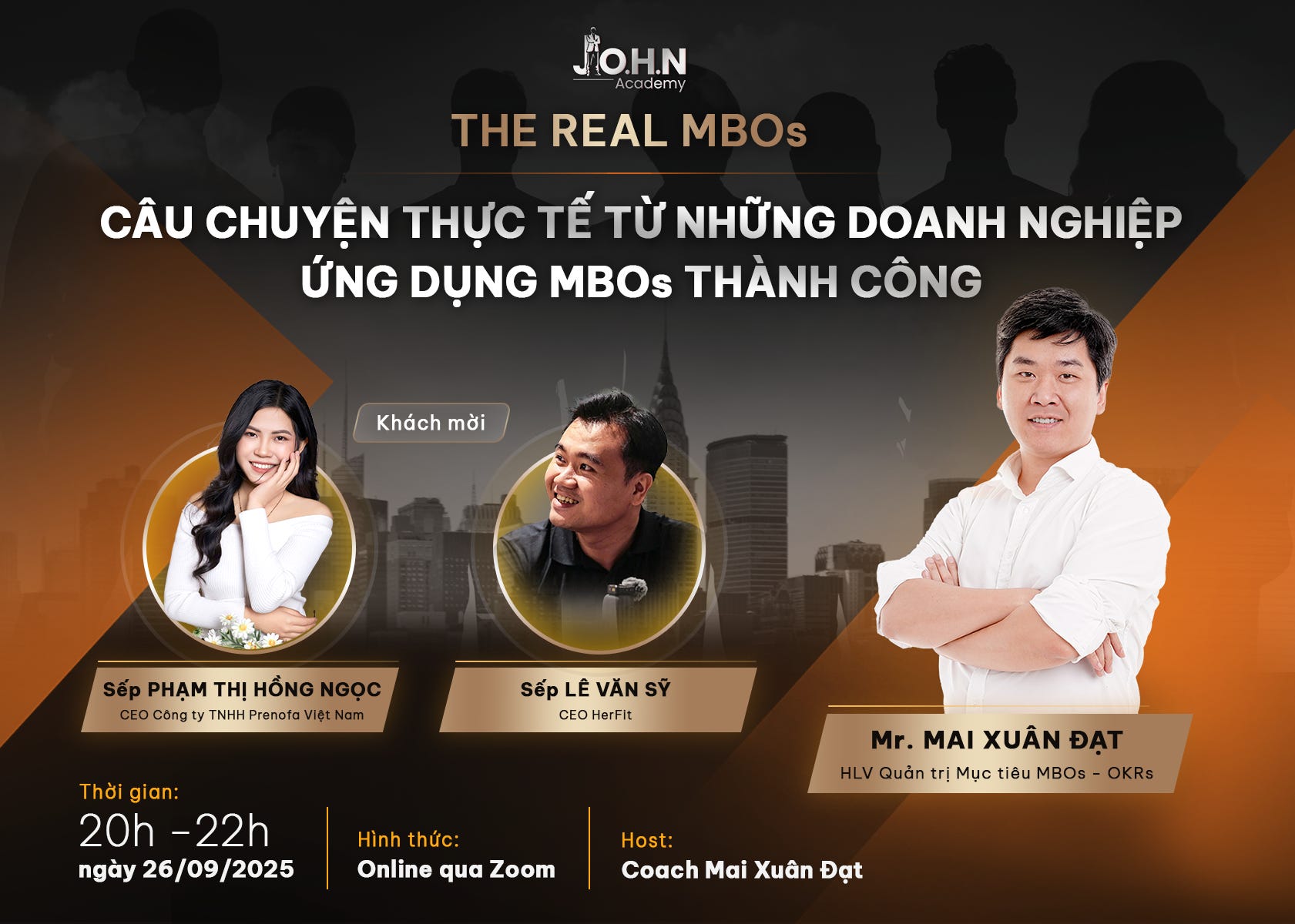 “The Real MBOs” cũng như các chuỗi “The Real” khác mà tôi tổ chức, là những câu chuyện chân thật về các doanh nghiệp triển khai thực sự Quản trị Mục tiêu đúng nguyên lý mà tôi hướng dẫn, được kể bằng chính các CEO.